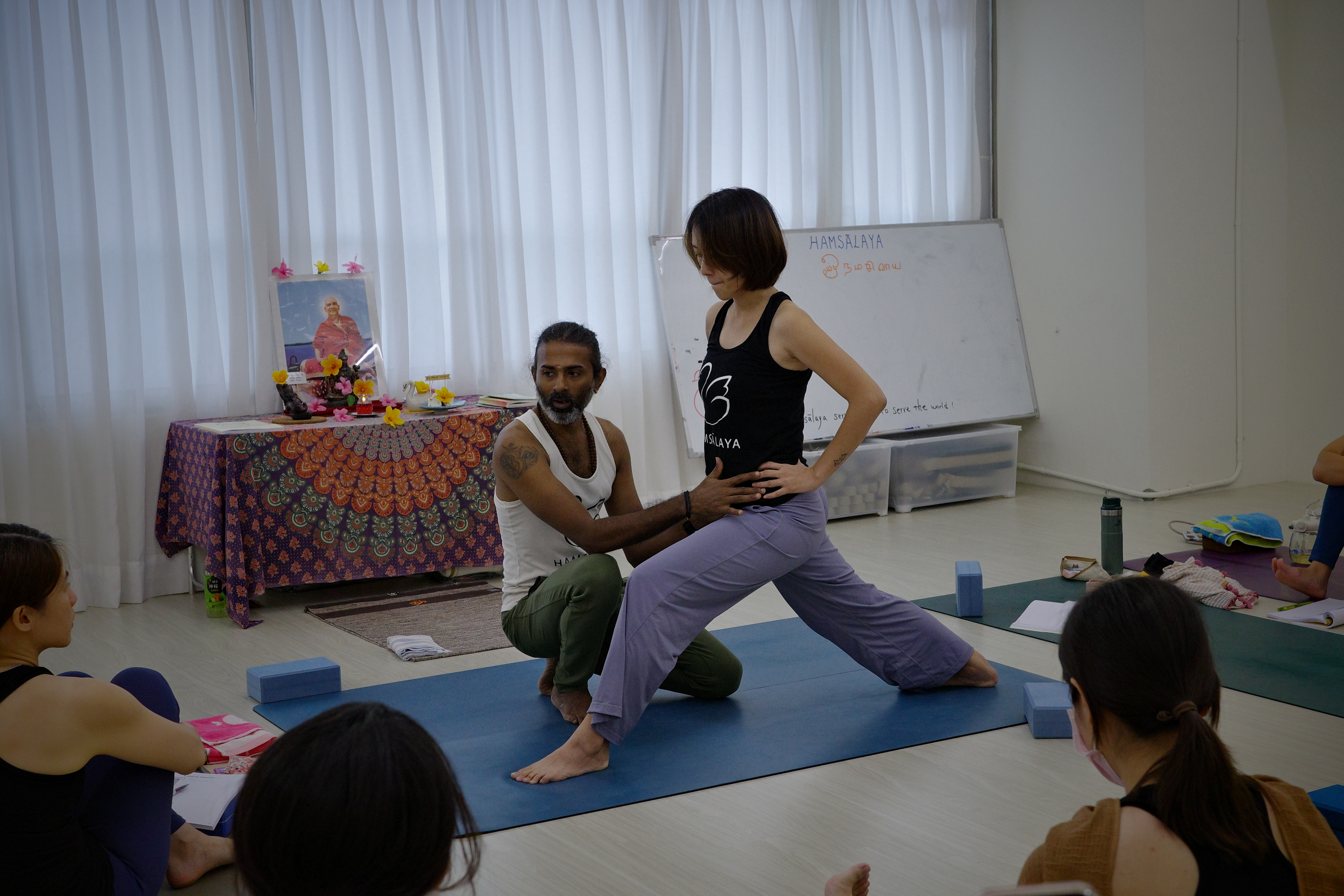 Raj 老師會細心地調整每一個動作,並引導身體處在不同階段的學生,都能以適合自己的方式進入體式。