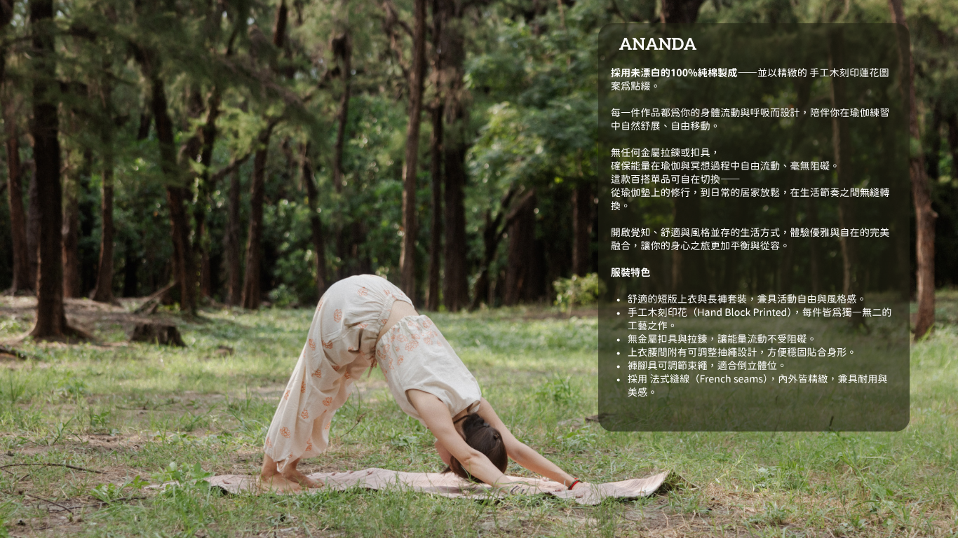 所有服裝皆以 天然材質製作,並經手工製作與/或手工印染