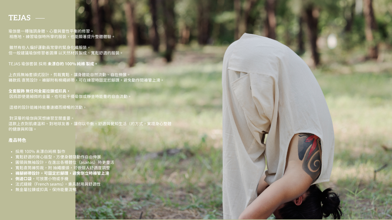 所有服裝皆以 天然材質製作,並經手工製作與/或手工印染